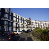 White building with multiple balconies and large windows in central Brighton